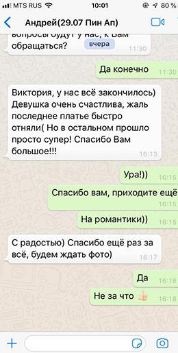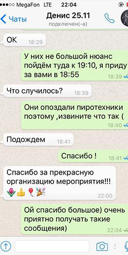 Мы благодарим друг друга за организацию чудесного события , если клиент не против, записываем отзыв и тепло прощаемся. В течение недели после мероприятия клиент получает фотовидео материалы, а мы, в свою очередь, ждем клиента повторно и его (её) друзей, пришедших по рекомендации.
